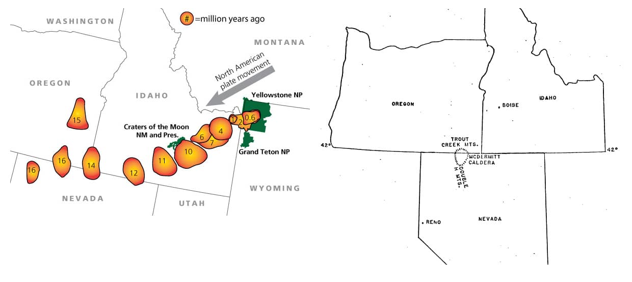 The McDermitt Caldera is the oldest of the many Yellowstone Hotspots, a series of massive volcanoes – both maps – United States Geological Survey – US Geological Survey