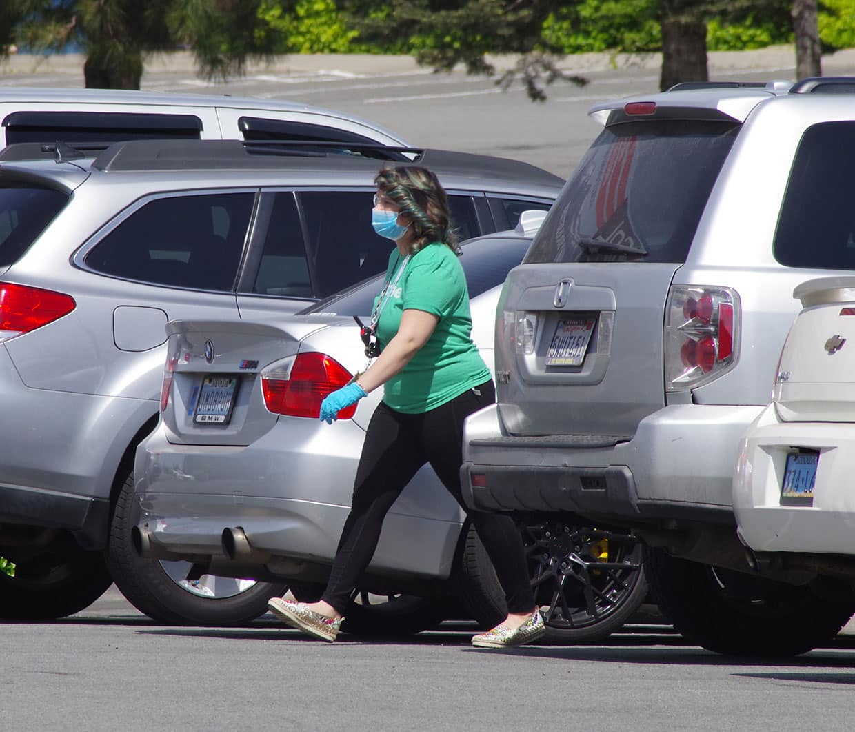 A Silver State Relief budtender serves customers in their cars on May 1, 2020 – photo: Brian Bahouth/The Ally