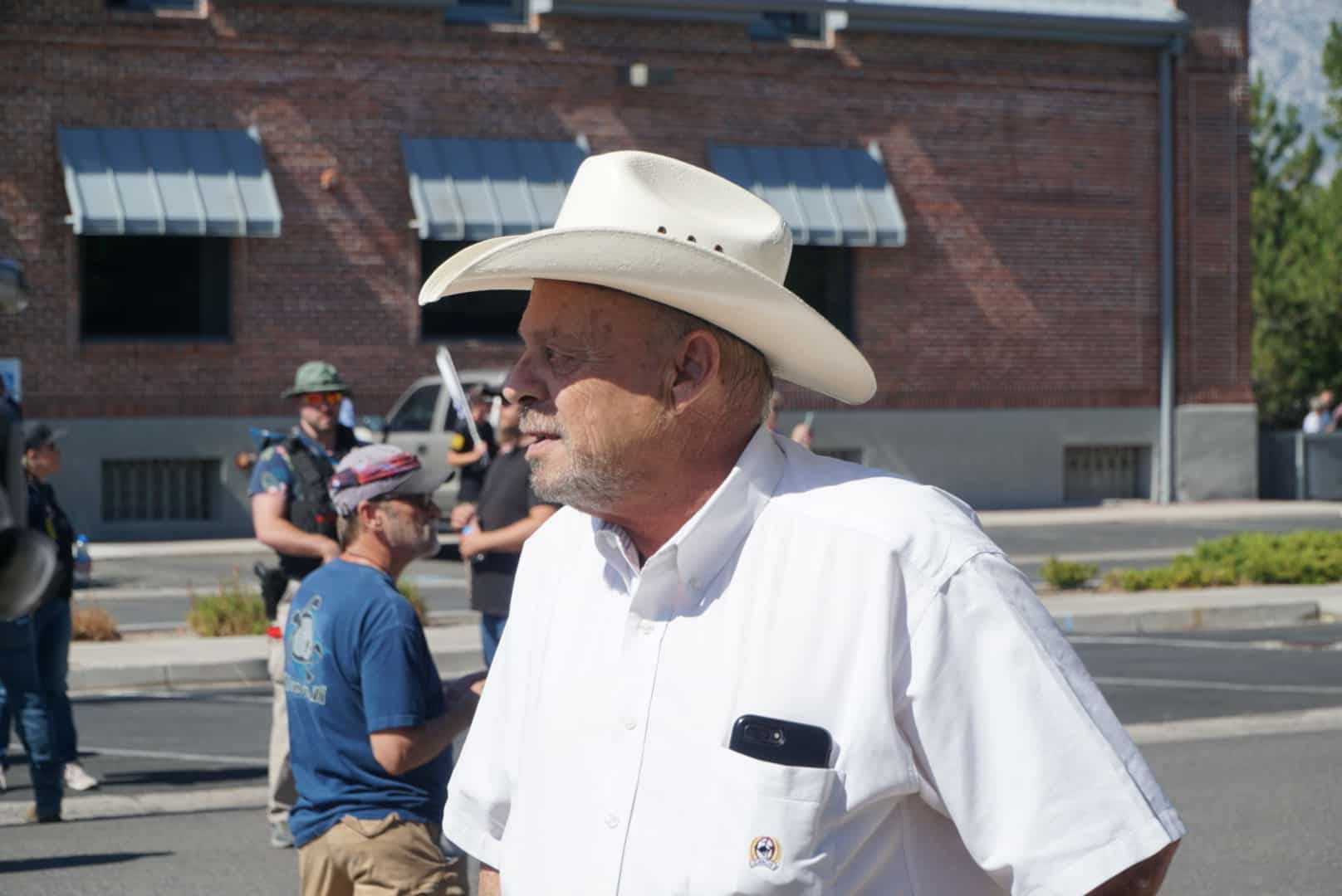 It was at that point that Assemblyman Jim Wheeler, wearing his signature white cowboy hat, got in the middle of the throng.