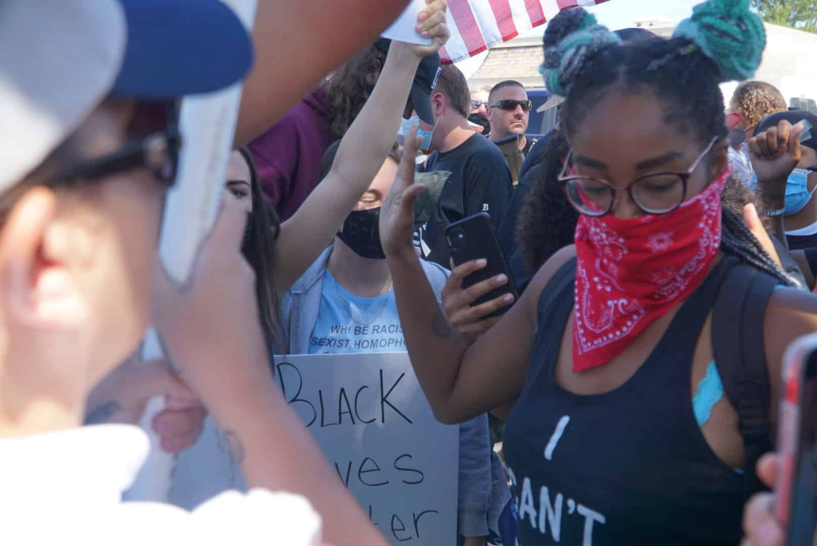 While the man himself was not associated with BLM, I quickly realized there were two young BLM protesters inside a vehicle trying to leave the scene. Protesters swarmed the car, screaming at the protesters, who looked to be teenagers, to get out of the car while simultaneously telling them to get out of town.
