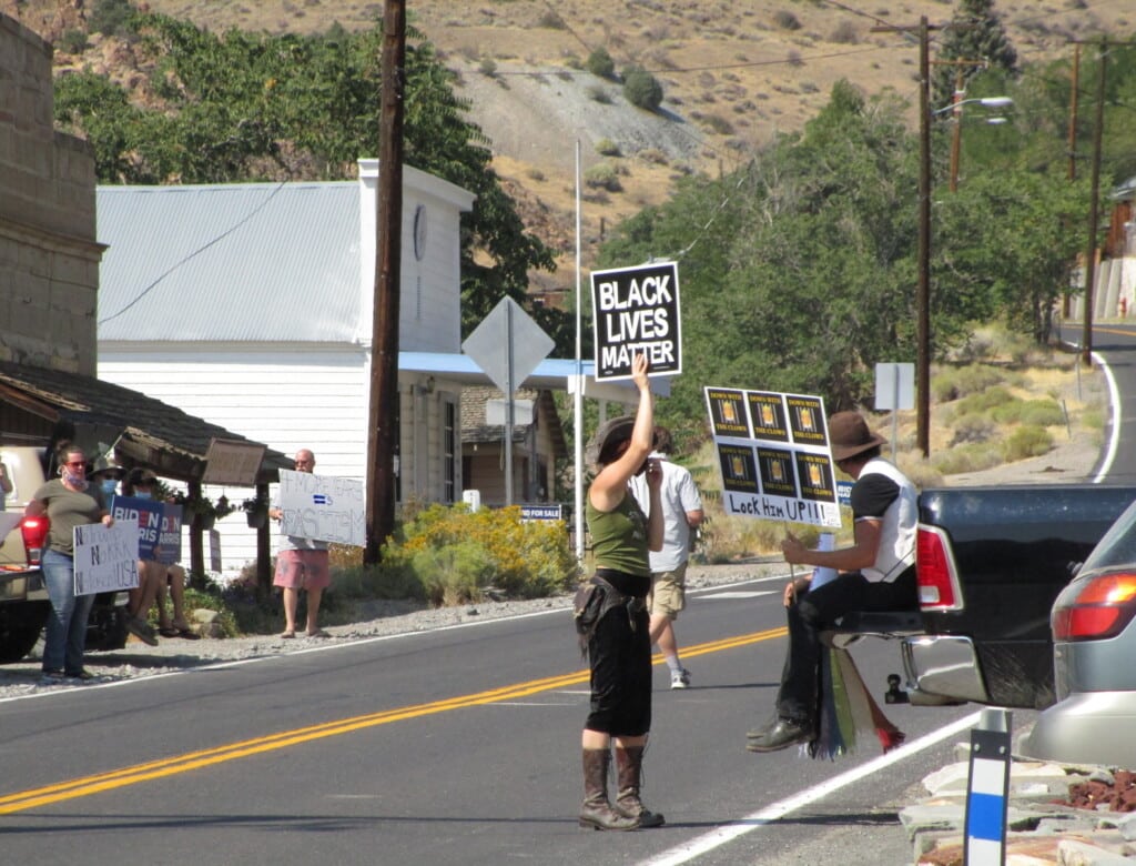 Some folks in the historic Comstock community of Silver City got wind that a convoy of Trump supporters might pass through Silver City on Sunday afternoon, and decided to stage a counter-protest.