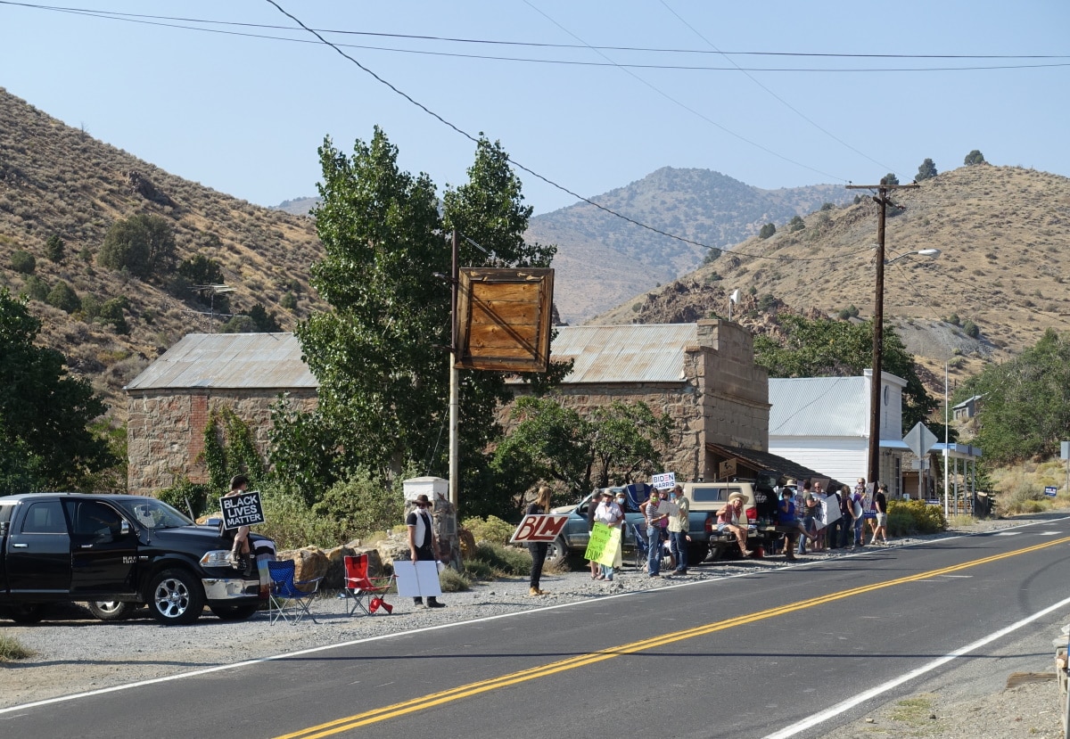 Some folks in the historic Comstock community of Silver City got wind that a convoy of Trump supporters might pass through Silver City on Sunday afternoon, and decided to stage a counter-protest.
