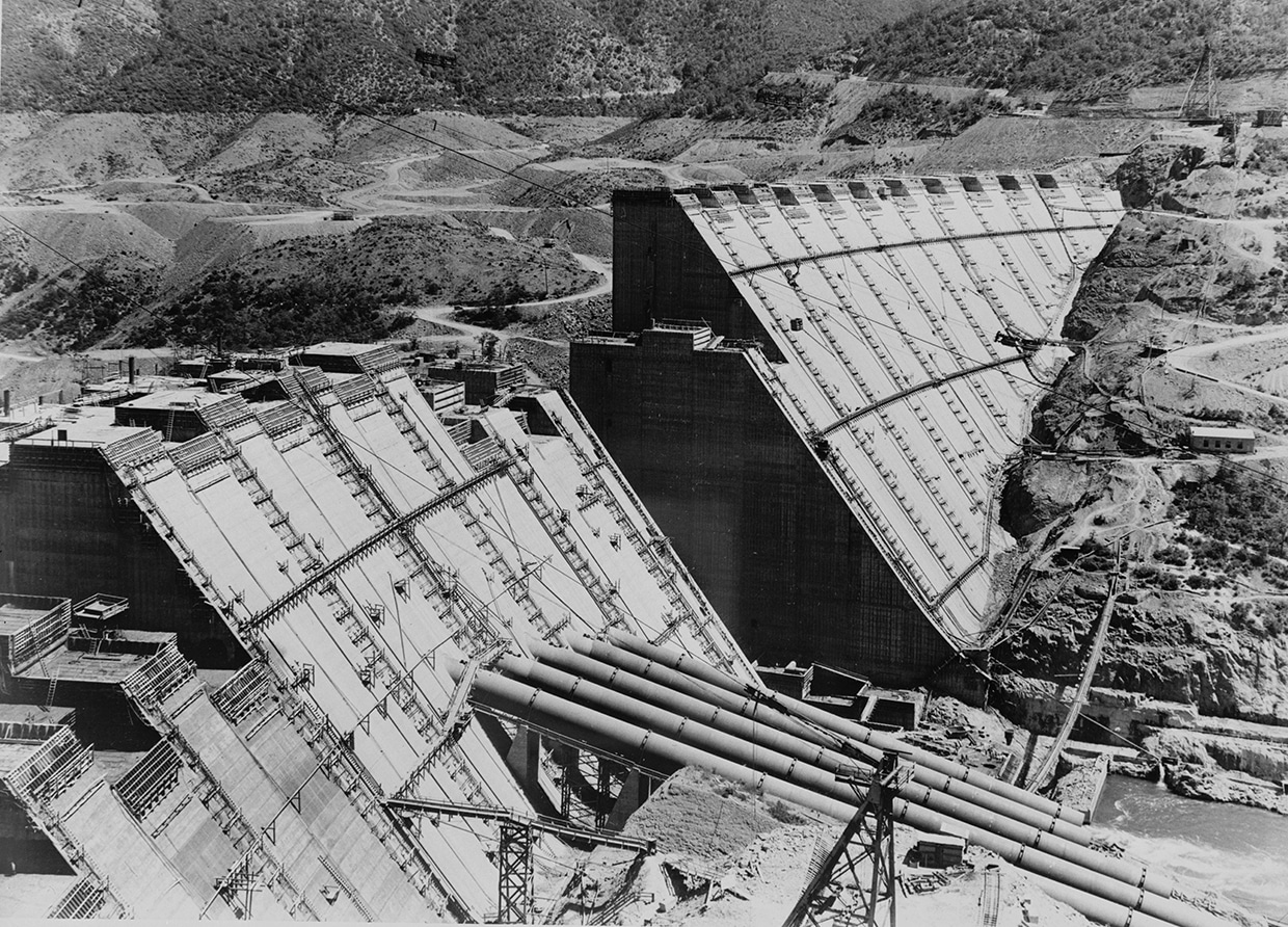 Shasta Dam under construction in 1946 – photo: Library of Congress