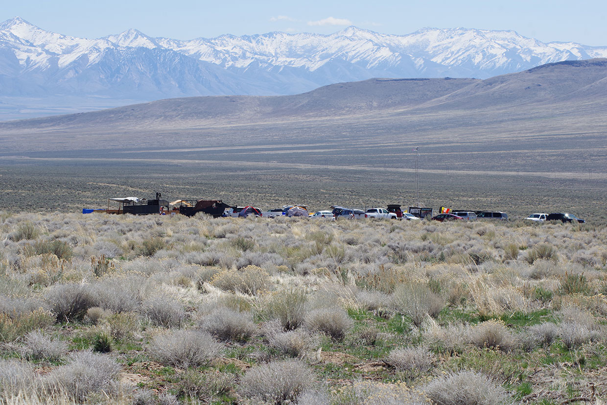 People chatted. Children played in the sage brush that stretched across the vast valley floor. The snow-capped Granite Peak, Santa Rosa Peak, and Paradise Peak shimmered some 30 miles to the east.