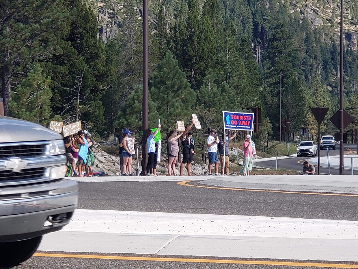Lake Tahoe basin residents protested over tourism in the basin in August of 2020 – photo: Paula Peterson/South Tahoe Now