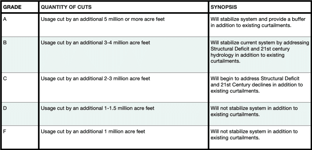 The above table is predicated upon simple math. With climate change, we’ve lost about 3 million acre-feet from the 20th Century average in addition to the annual 1.2 million acre-feet from the Lower Basin’s structural deficit i.e. over-use, evaporation, and system losses. While we cannot predict what each subsequent water year will bring in the coming decades, we can plan to expect that we will see a system with less and less water.