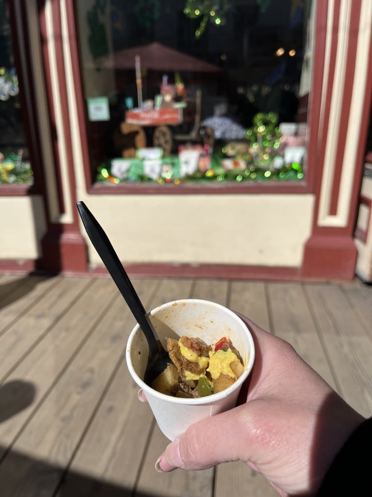 Dolls N Balls, #7- I like the flavors in this cup of ball hash, and very St. Patty’s Day inspired with the chunks of potatoes and bell peppers.