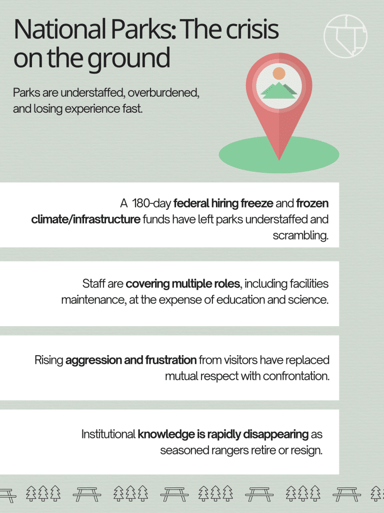 If the parks continue to lose their stewards, educators and defenders, what remains? As the 2025 summer season approaches, the question is no longer whether we can visit these places, but whether we’ll still recognize them when we do.