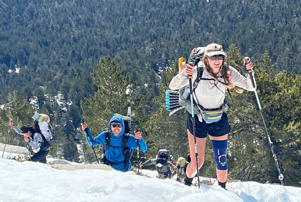 After disappointments on Baden-Powell and San Gorgonio, I was extra motivated to achieve the hike’s last major summit, San Jacinto Peak. A few weeks earlier, snowfall was so heavy here that officials completely closed the trail. But while I trekked through the desert, the sun melted much of the snowpack. I strapped my microspikes onto my shoes and climbed with several others in the early-morning hours. Snow was tiring but not dangerous and we celebrated on the summit at 10 a.m. No strikeout for me! San Jacinto’s view boasts an incredible variety of Southern California geography, including the Mojave Desert, Sand to Snow National Monument and Tahquitz Peak.