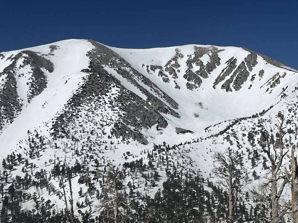 San Gorgonio Mountain, 11,503 feet tall and the highest peak in SoCal, tempted me greatly. The shortest route from the PCT to its summit and back totals 20 miles, no cheapie. I rose at four, left camp at five, and got about halfway up by 9 a.m. The approach trail was covered with blowdown trees, loose rock, and eventually miles of snow. A coyote howled in the distance, as if in warning. On pace to finish well after dark, I made myself turn around; strike two.