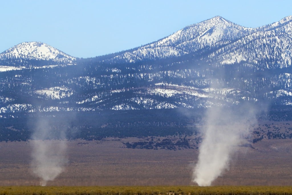 A dust devil kicks up on a sagebrush flat in the western Great Basin Desert. Image: Michael P. Branch.