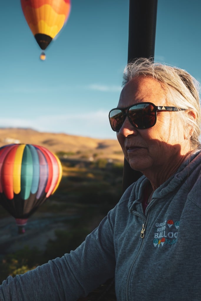 I woke early and headed to San Rafael Park, joining longtime pilot Katie Griggs—who has been flying hot air balloons for nearly forty years—and her 10-year-old granddaughter, Olivia, for a ride I’ll never forget.