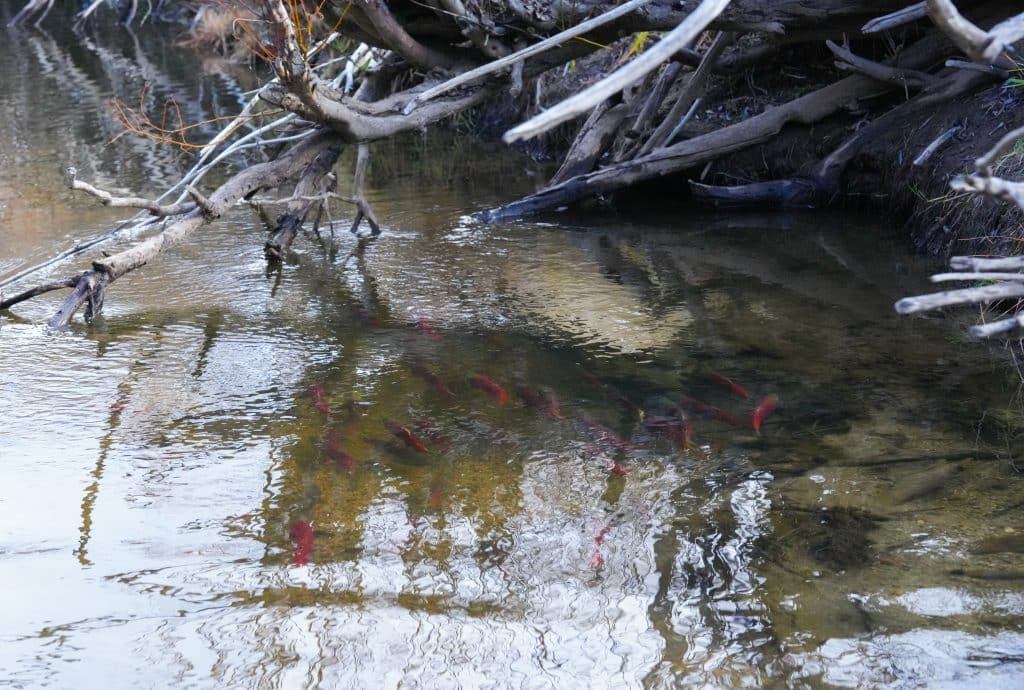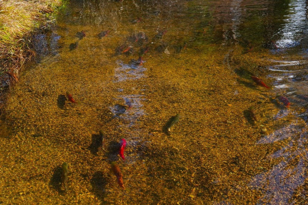 Spawning kokanee salmon bring waves of red to Taylor Creek and the Upper Truckee River.